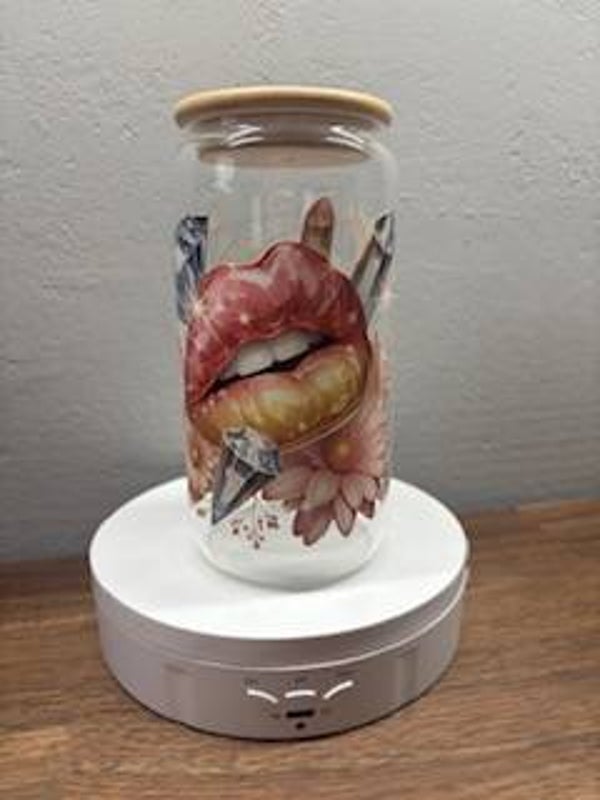 ✨ Stylisches Glas mit Mund-Motiv & Bambusdeckel – 470 ml ✨
