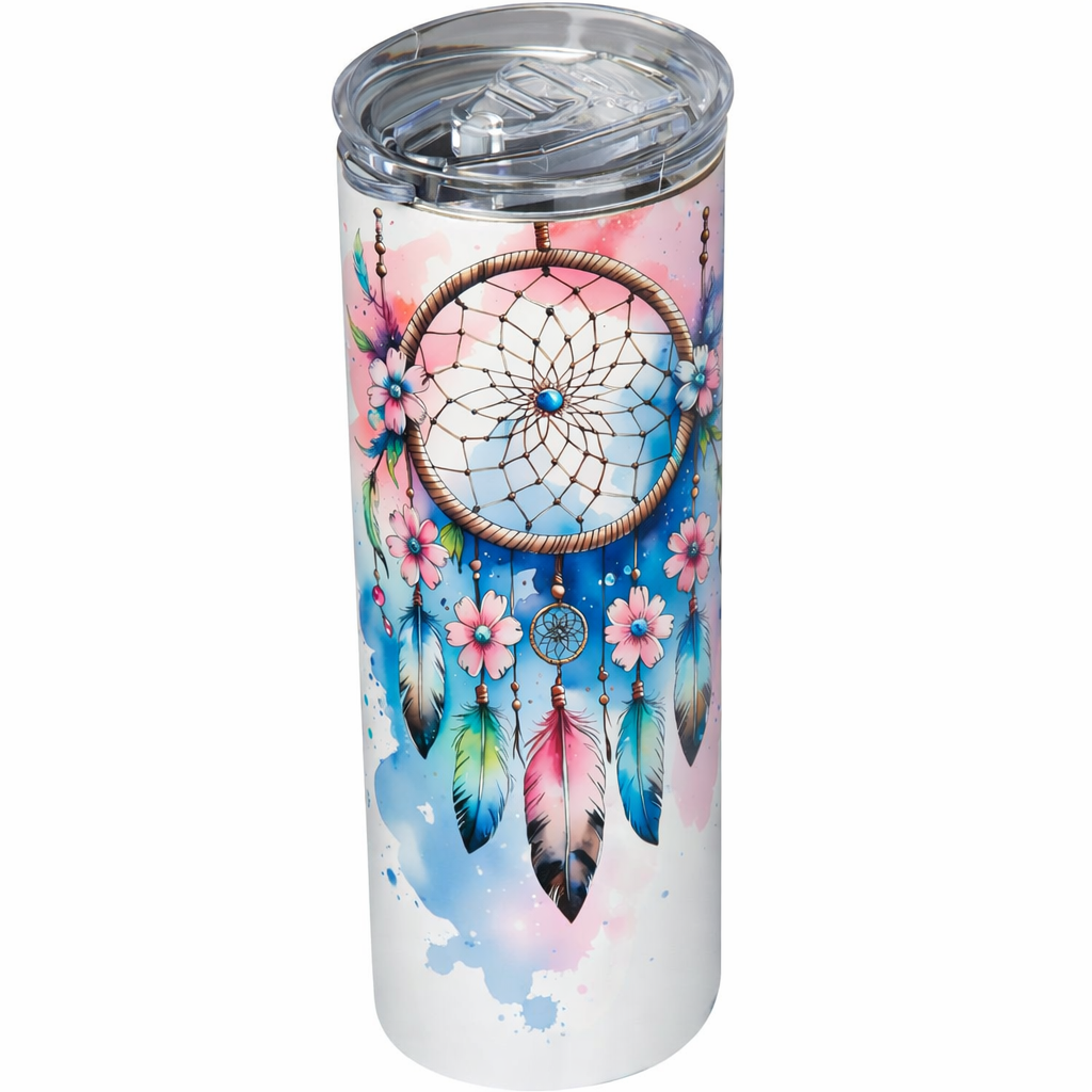 Starte deinen Tag mit einem Hauch von Magie! Dieser stilvolle Edelstahl-Thermobecher begeistert mit einem wunderschönen Traumfänger-Motiv in sanften Pastellfarben. Der Traumfänger steht traditionell für Schutz, positive Energie und schöne Träume – perfekt, um dich auch unterwegs an gute Gedanken zu erinnern. 💫